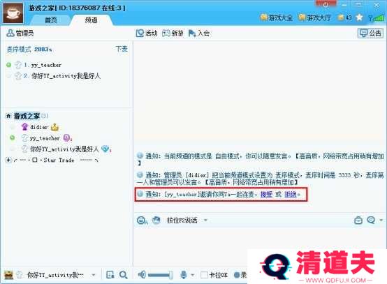 受邀者点击“接受”,连麦成功;点击“拒绝”,连麦失败。
