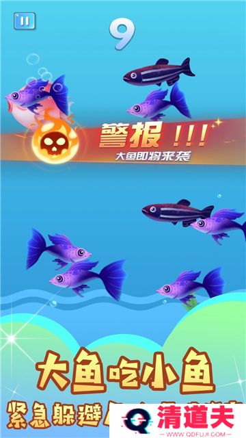 2、通过吞噬更小的鱼来增长体型,增加自己的生存机会。