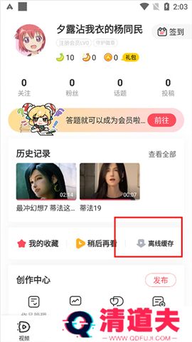 6、下载完成后用户可以前往【我的】页面中点击【离线缓存】(下图红色方框区域)