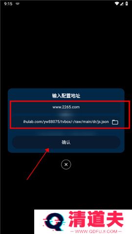 3、然后输入配置地址,上面为名称,下面为配置地址,如:http://cdn.facehappy.cn/tv4k.json(更多配置地址,可以查看内容)