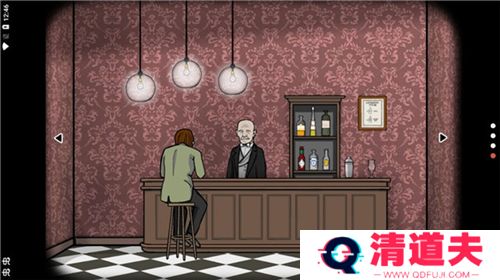 1、进入游戏,在吧台上有一个穿着绿色衣服的男人和一个穿着黑色西装的男人,绿色西装的男人说,别管我,我就想喝喝酒,黑色西装的男人说,给那个男人一杯酒,来到吧台右边,按照墙上的画框里提示倒两杯伏特加和两杯橙汁,得到一杯螺丝起子鸡尾酒