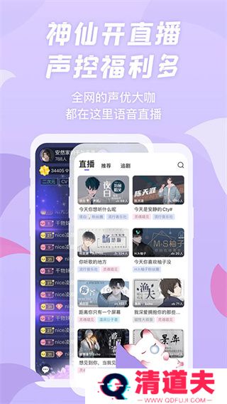 漫播听剧app里还汇集了海量的声优阵容,还有全网著名的声优大咖,都将在这里进行语音直播,这也是声控的一大福利。