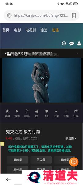 6、软件只提供搜索功能,并不提供播放功能,这里小编以鬼灭之刃最新章为例子;