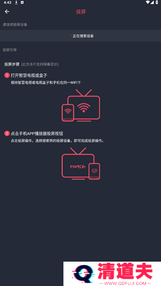 3、点击玩投屏之后系统就会自动搜索附近可投屏的设备,选择设备就能完成投屏了。