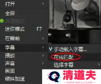 2、电影打开之后,对画面右击,选择字幕然后在线匹配。