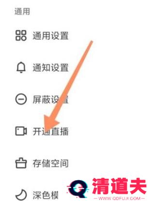 3、在通用这一项中,用户可以看到开通直播的选项,点击进入。