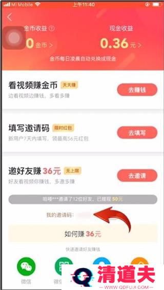 4、填写完成后,点击【提交领现金】即可获得一元现金奖励。注意,邀请码的有效时间为新用户首次激活APP的7天以内。