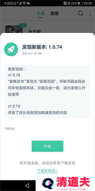 下载成功后在旧版中就可以直接打开新app了,新app在升级过程中已经将应用名称修改为蜜蜂阅读app,但是功能是在旧版本的基础上迭代升级的,账号信息是一脉相承的,用户不用但心账号信息转移不过来。需要提醒的是不要使用同名但不是真正官方正版的应用,不然没有看小说和漫画的功能的。