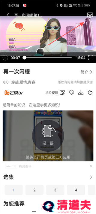 2、然后来到影视播放的页面中,在这里我们点击右上角的【投屏图标】;