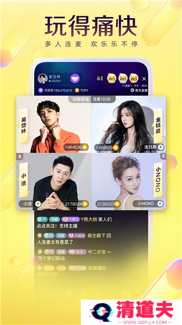 yy直播手机版最新版是一款非常好用的语音开黑直播软件,在这里用户可以看到超多美女网红和一线明星实时直播,各种整活视频、搞笑段子、趣味短剧任你滑动观看,还能加入连麦广场与喜欢的那个她亲密互动语音对话,以后玩游戏再也不用怕孤单了,喜欢的小伙伴快来下载yy直播手机版最新版试试吧。
