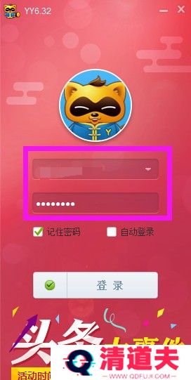 1.我们先输入自己的YY账号与密码登陆自己的YY账号。