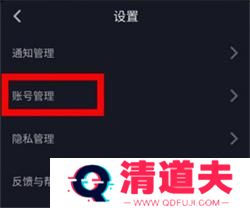 3、打开设置后,点击账号管理选项。