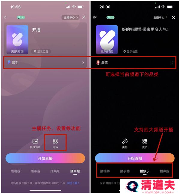 1、开播前请选择正确分区和进行相应的开播前设置: