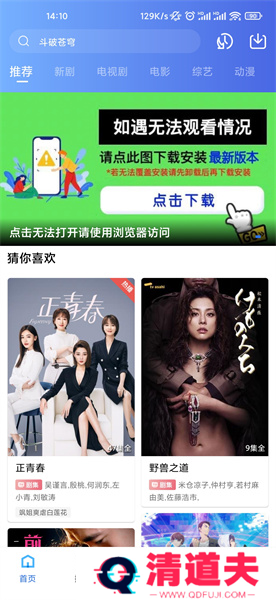 1、在本页面下载安装行星视频后,打开APP,在首页可以看到推荐和猜你喜欢的电视剧,将当下正在热播的剧推荐给用户;