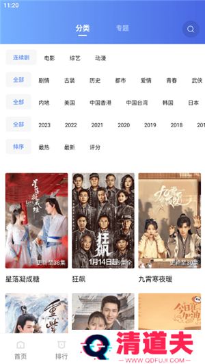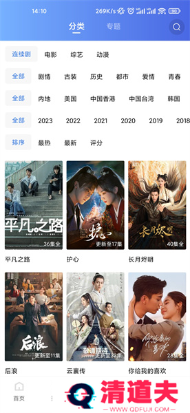 3、通过分类频道可以根据类型、题材、地方、年份、最新、最热、评分等方式筛选出不同的剧作;