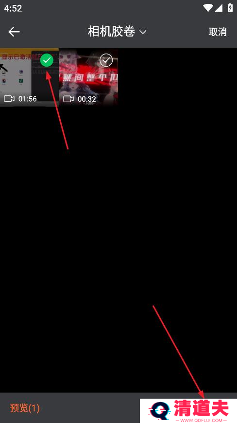 2、选要添加水印的视频,并点击右下角的“已完成”。
