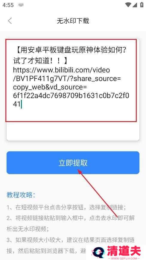 2、然后将获得的链接复制到输入栏内,并点击“立即提取”。