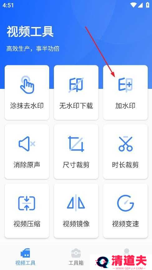 1、点击“加水印”功能。