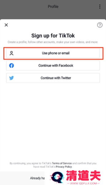 2、点击第一条“Sign Up With Phone or Email”;