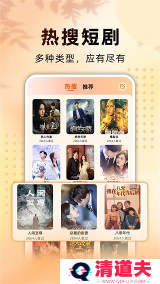2、热搜短剧,多种类型,应有尽有,不同的短剧题材都可以查看。