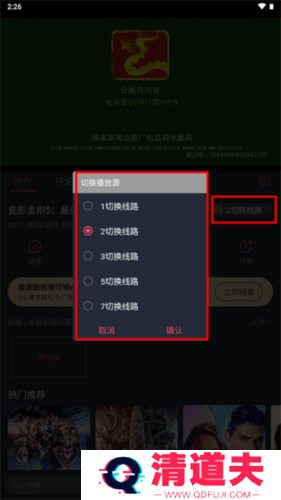 3、如果加载速度过慢,可以点击线路切换,点击“确认”即可。