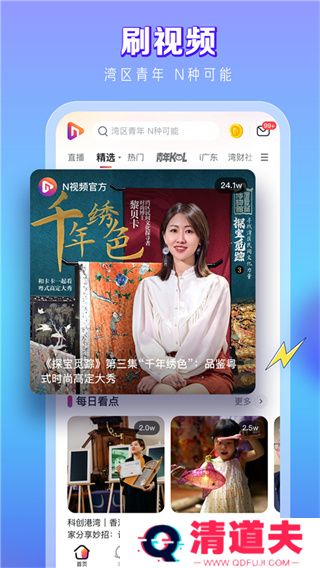 N视频app是一款很受欢迎的短视频播放软件,南都N视频高清手机软件定位为“视频版广东发布”,主要的目标用户就是以年轻人为主,立足于广东和粤港澳大湾区,并就此辐射全国。N视频app通过年轻化视频表达,有着一个十分年轻态化的呈现,将为你打造一个新型年轻人社交圈。