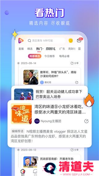 N视频app是南方报业传媒集团重点打造、南方都市报负责运营的新锐媒体平台,除了可以提供热门的阅读资讯,还有丰富的短视频等你来刷。