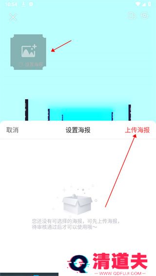 2、进入后点击左上角设置海报,接着点击上传海报;