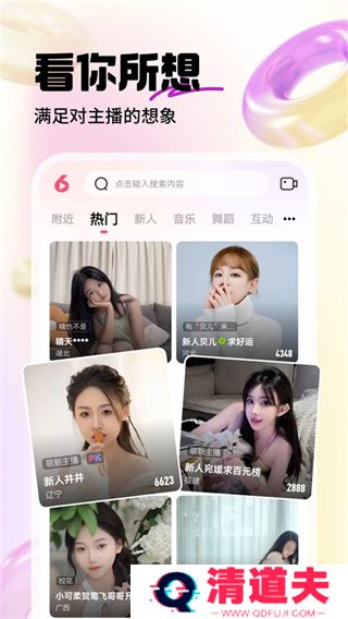 六间房直播app优势六间房直播app可以让你实现真实的与美女主播进行面对面的聊天交友互动,用户还可以搜索添加你附近的同城主播,遇见让你心动的TA,有机会线下面基哦!