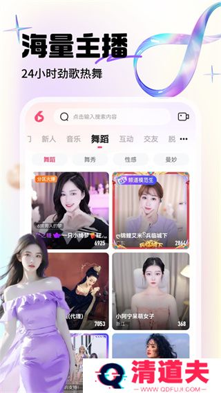 六间房直播app是一款十分精彩有趣的专业手机直播平台,六间房直播聊天交友软件拥有海量的高颜值美女主播,这些主播不仅有颜还有料,为你带来一场颜艺盛宴,让你轻轻松松大饱眼福。六间房直播app还为用户提供了多个不同的才艺展示板块,你可以根据自己的喜好随心挑选观看。