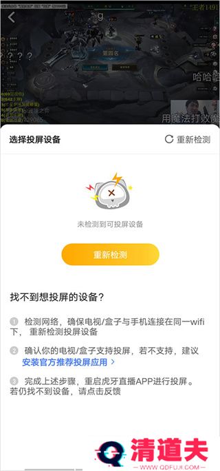 2、点击后即可搜索投屏设置,搜索到设备点击即可进行投屏了。