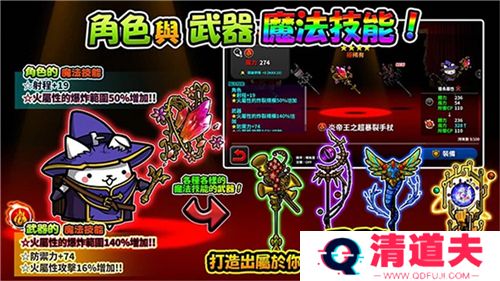 游戏简介在游戏中,玩家将扮演猫咪英雄,与可爱的猫咪一起进行冒险和战斗。游戏的核心玩法是传统的勇者大战魔王的冒险玩法,但创新性地将猫咪元素融入其中,玩家可以一边享受刺激的冒险,一边被这些小可爱们治愈。游戏采用了萌系与魔法的结合,这些可爱的猫咪身体内蕴藏着强大的能量,玩家可以通过穿戴装备打造最强角色,使用材料进行锻造强化。