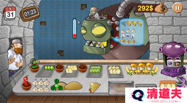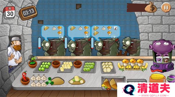 2、等待僵尸客人来临之后,就可以开始制作沙威玛了,制作流程和原版一样。