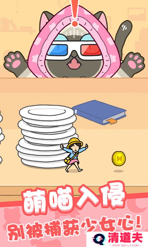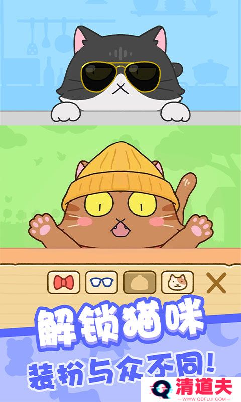 通过收集金币解锁新的猫咪角色,或改变女孩的外观,成就解锁和背景更换增加了额外的乐趣。