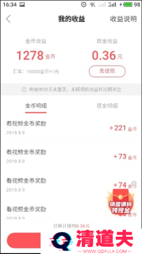 注意:连续30天未登录,没有提现的金币会被清空哦。