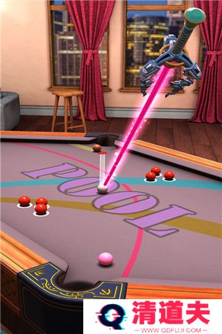 游戏采用第一人称视角,并结合逼真的3D物理场景呈现,玩家仿佛置身于真实的台球桌前,能够感受到台球的真实运动轨迹。