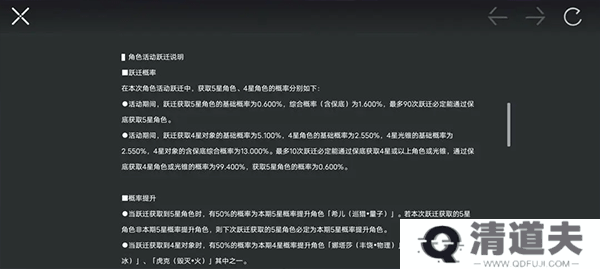 5星保底机制:最多50抽必获得一个5星角色。