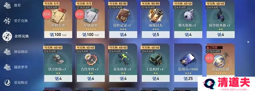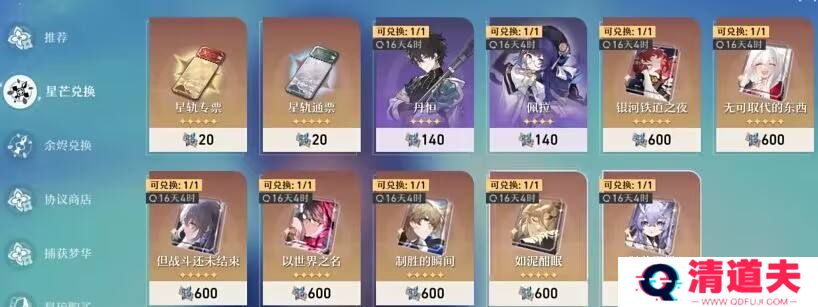 星穹铁道也有类似原神的星尘/星辉和对应商店的设计。对于抽到重复角色会获得对应代币,可以在定期轮换的商店里兑换商品。