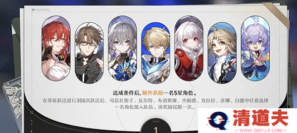常驻池抽300次后可任选一个常驻五星角色(该奖励仅限一次!)