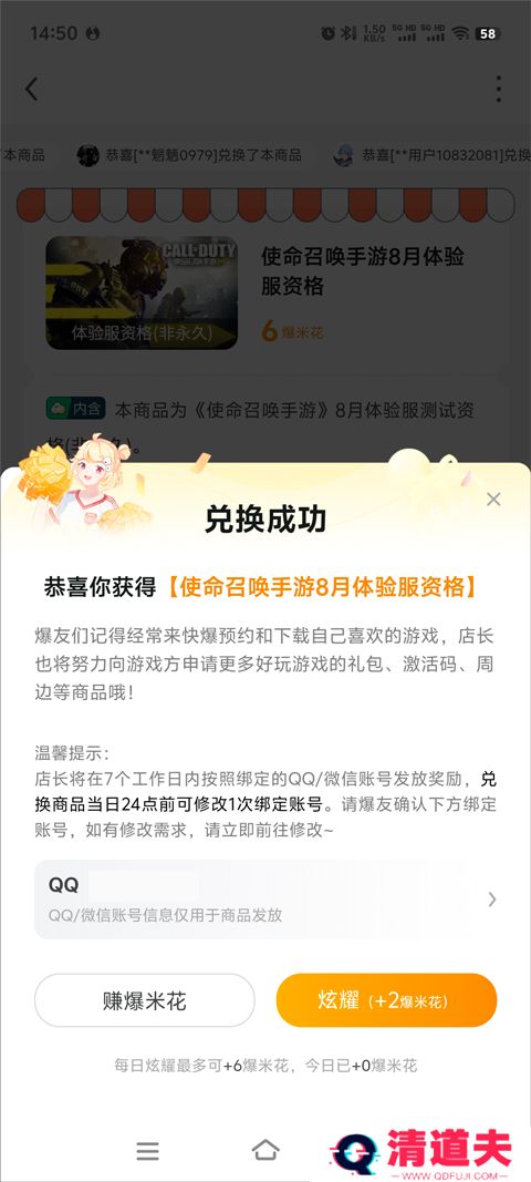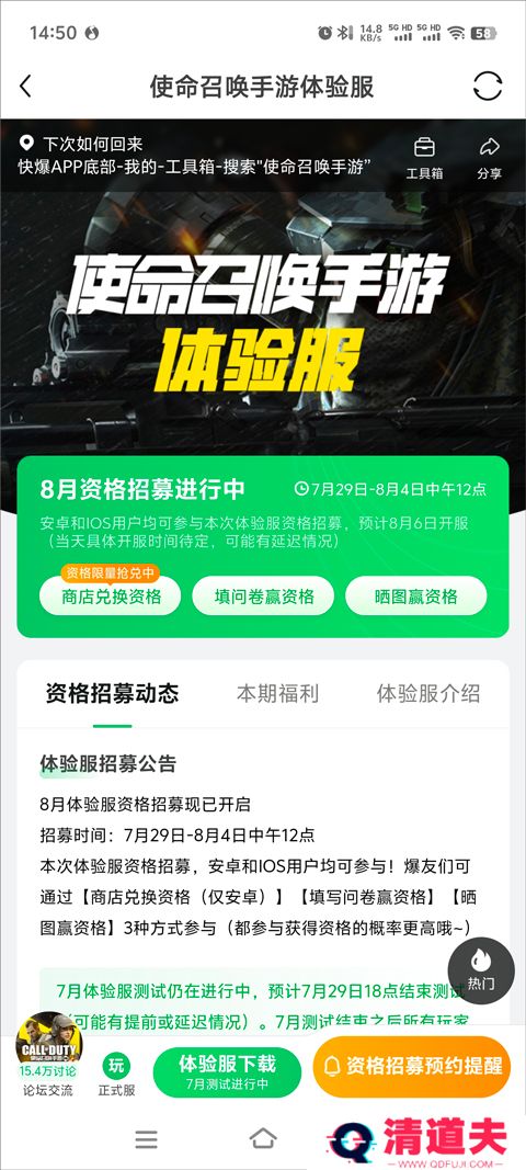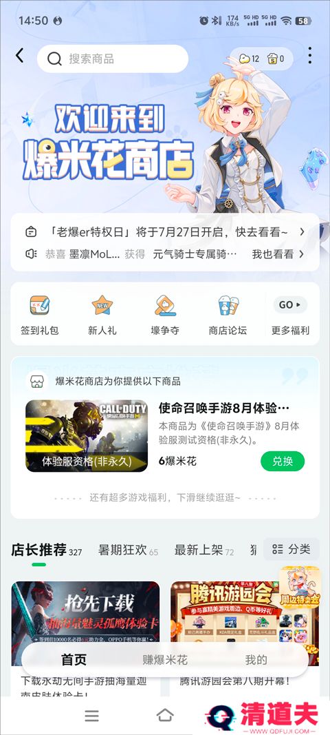 2、这时你需要在本站下载打开“好游快爆”,注册登录后领取“爆米花”,然后搜索“使命召唤手游体验服”,点击“商店兑换资格”。