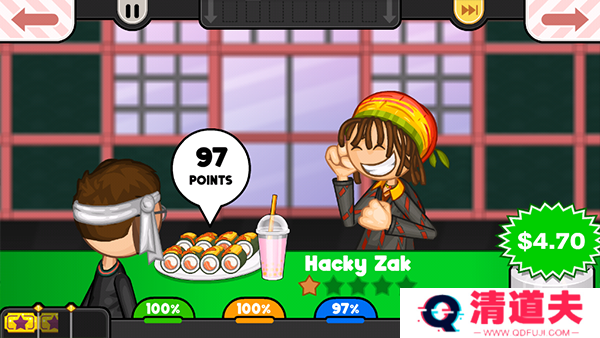 5. 提交订单:完成寿司和饮品的制作后,玩家需要将便签拖动到绿色牌子的位置,提交订单给顾客,并等待顾客给出评分和支付收益。