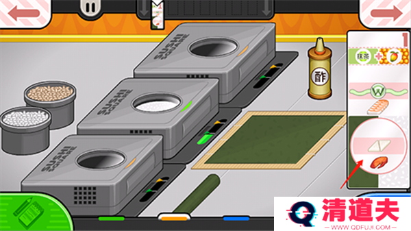 3. 制作寿司:根据顾客的要求,玩家需要在烹饪台上制作寿司。包括煮饭、铺海苔、加辅料、卷寿司、切寿司等步骤。