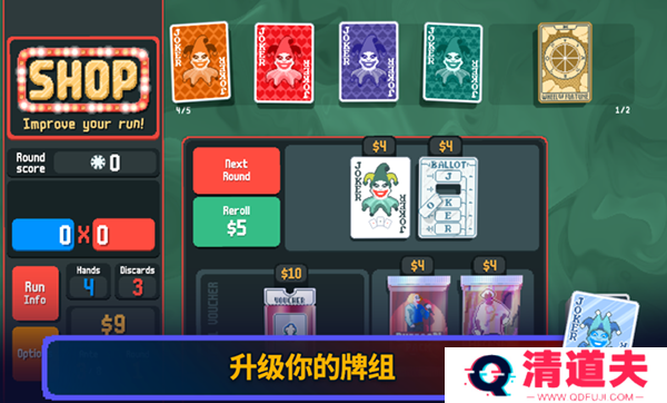 2、游戏体验富有深度:每一局游戏都有极高的可玩性,通过不同的小丑牌组合和增效策略,玩家可以体验到层次丰富的游戏进程,极大提升了游戏的深度与挑战性。