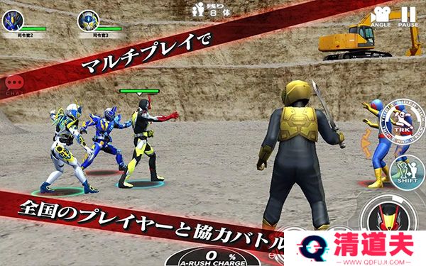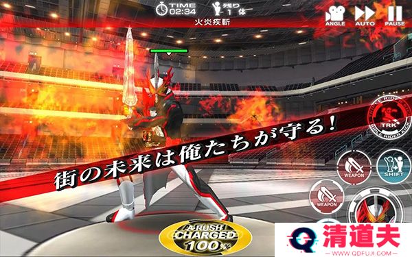 5、动态光影与特效呈现:游戏在视觉表现上十分出色,无论是角色的战斗动作还是技能特效,都尽显假面骑士战斗的张力与震撼感。