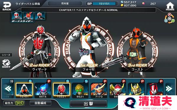 2、庞大的角色阵容:从昭和时代的经典骑士到平成、令和系列的新生代英雄,玩家可以体验到跨时代的骑士合集,感受每一代角色的独特魅力。