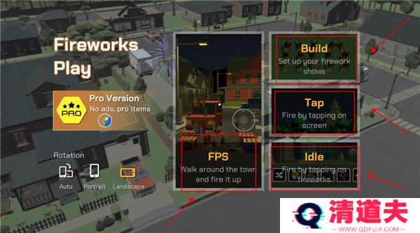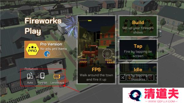 1、打开游戏该界面后,点击这里可以切换游戏的横屏与竖屏模式,以不同角度去欣赏烟花。