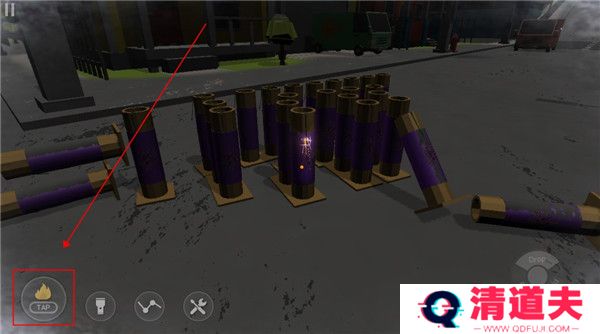 10、摆放好后,我们点击滑动屏幕对准烟花,然后点击旁边的打火机就可以引燃引线,点击一次即可,其余烟花会一起被点燃。