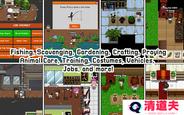 爱情和生活模拟RPG手机版是一款采用精致像素风格的角色扮演游戏,卡通化的画面搭配辽阔的地图,为玩家带来极致的视觉享受。爱情和生活模拟RPG手机版背景设定独特:由于父母负债累累,玩家只有十周的时间还清债务,否则将面临被迫嫁给可怕的高利贷之女的命运!为了改变结局,你需要前往奇塔皮市,在那里努力寻找工作,将赚取的钱寄回家中。在城市中,你不仅可以工作赚钱,还能结识新朋友,与不同的女孩约会,甚至找到属于你的真爱。爱情和生活模拟RPG手机版的剧情发展完全由你的选择决定,是体验失恋的遗憾,还是赢得幸福的伴侣,全在于你如何规划这段奇妙旅程。