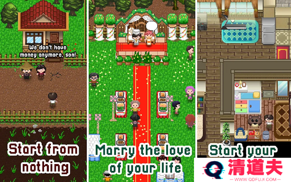 爱情和生活模拟RPG手机版特点:1、独特的故事背景:将家庭债务和婚姻压力融入游戏背景,是一个少见的设定。玩家需要在这种压力下努力求生,同时平衡个人生活与情感,带来了新鲜的游戏体验。
