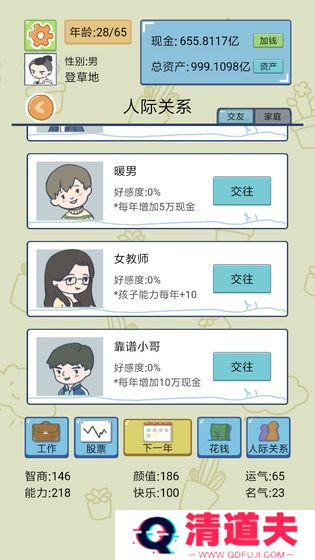 4、模拟真实社会场景:游戏涉及高考、职场竞争、投资理财等众多现实中的重要环节,考验玩家的智慧与决策能力。